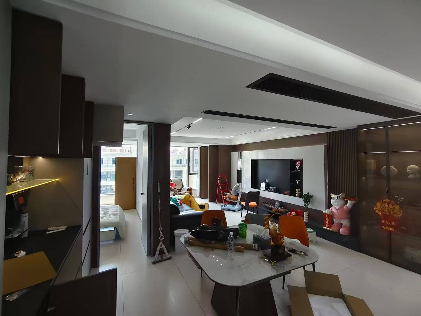 客餐厅,中央空调,木饰面,餐桌。