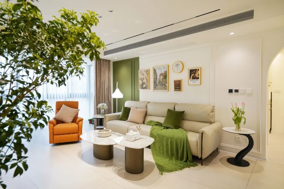 根据客户的需求,最终整体的风格定为:森系复古绿与纯净自然的法式简约。 低饱和的米色让整个空间轻盈而舒爽; 搭配经典的PU线条,虽简单但依然精致; 复古绿与珍珠白的碰撞设计; 为空间注入了生机感低调中透着时尚,灵动十足。