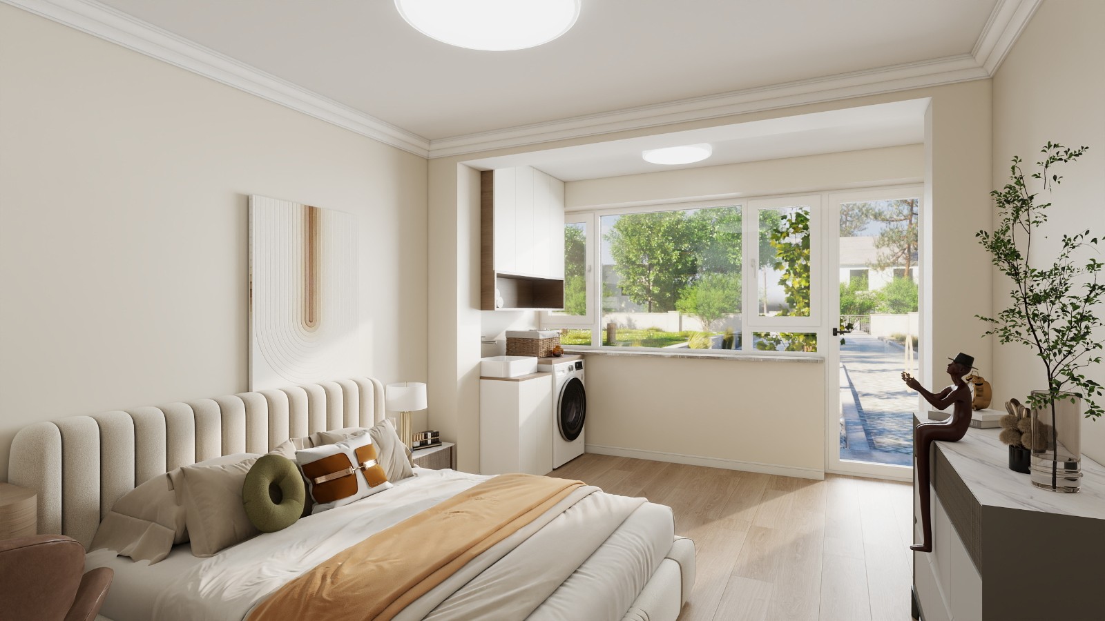 米色+浅木色主调,温柔宁静又治愈,绿植的绿色作为点缀,打破单调,增添生机活力