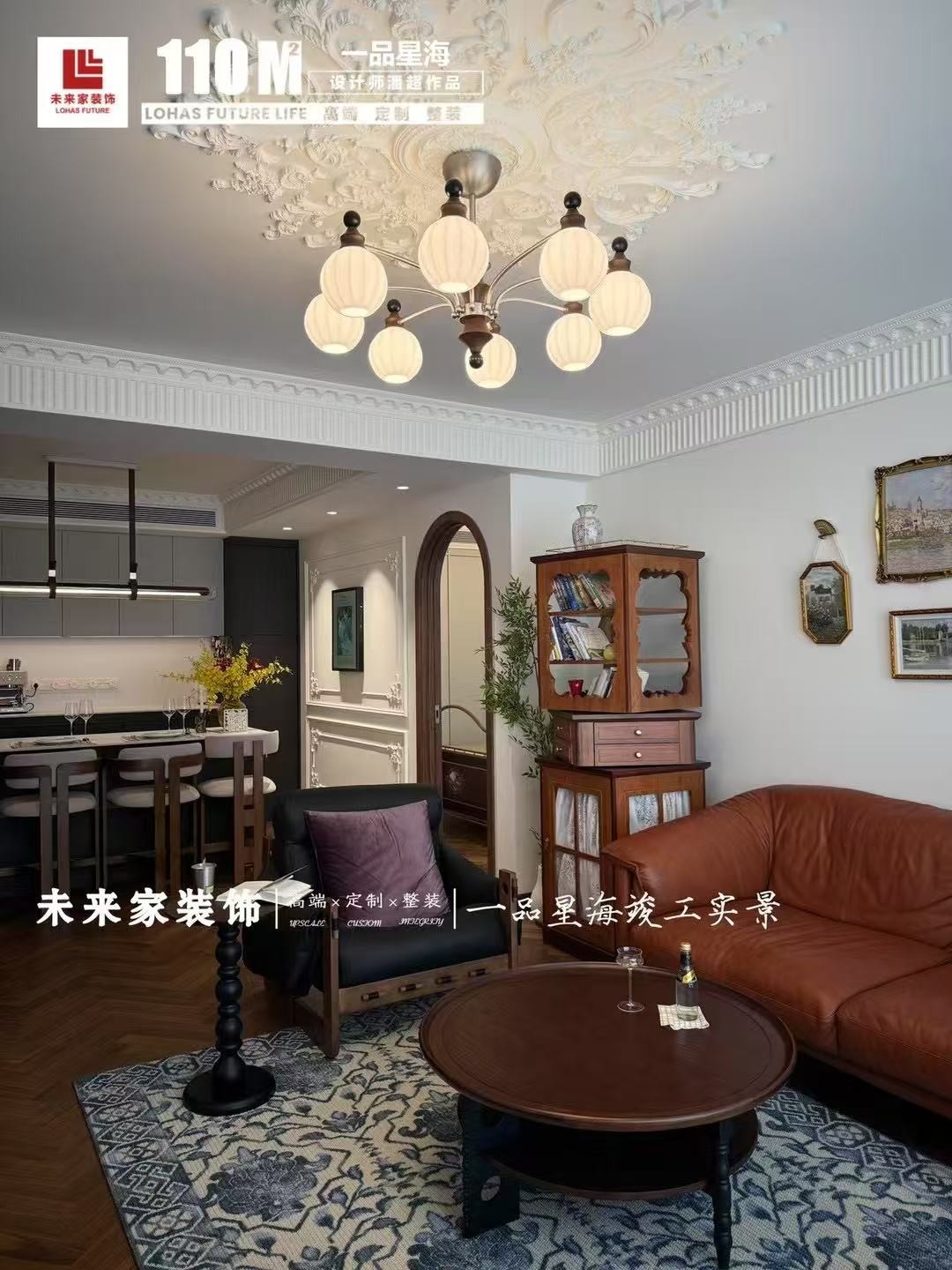 客厅为中古风设计 整体色调复古 暖色