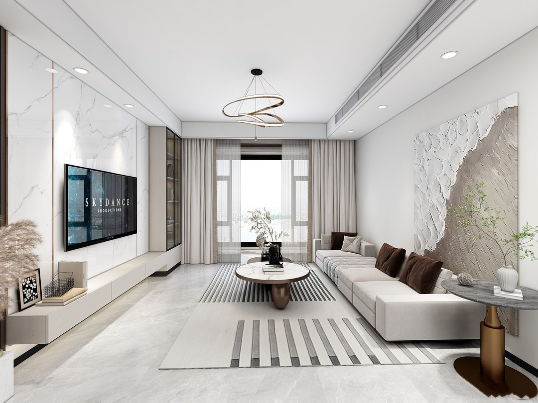 客厅放眼望去在墙面与色调上做了明显的层次,