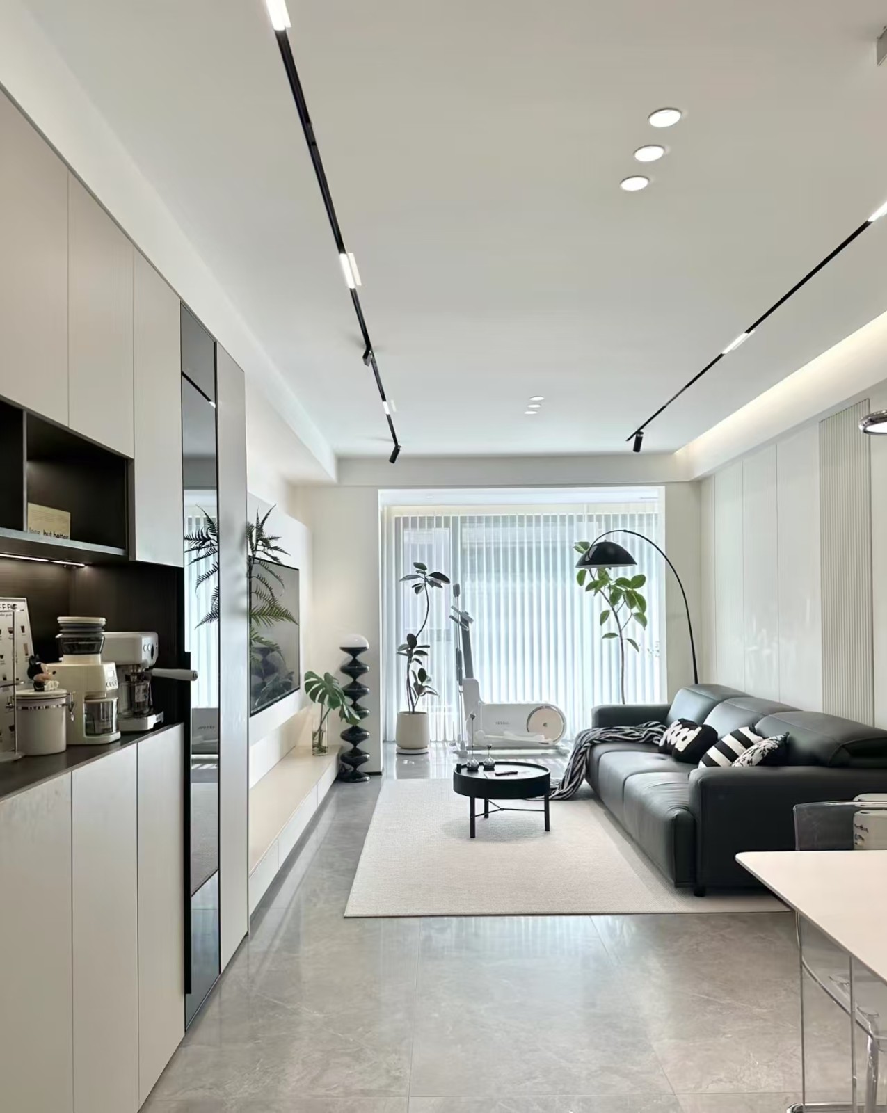 墙面整体以浅色为主,增加亮度。具体黑色点缀