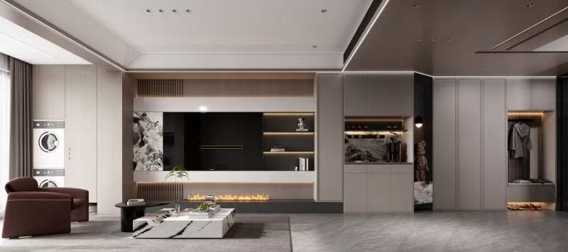 “设计不只是形式的表达 更是材质、光影与生活的共生“ ——项目风格定位为意式现代极简,以克制的设计手法,融合天然材质与中性色调,营造出宁静而富有质感的居住空间。