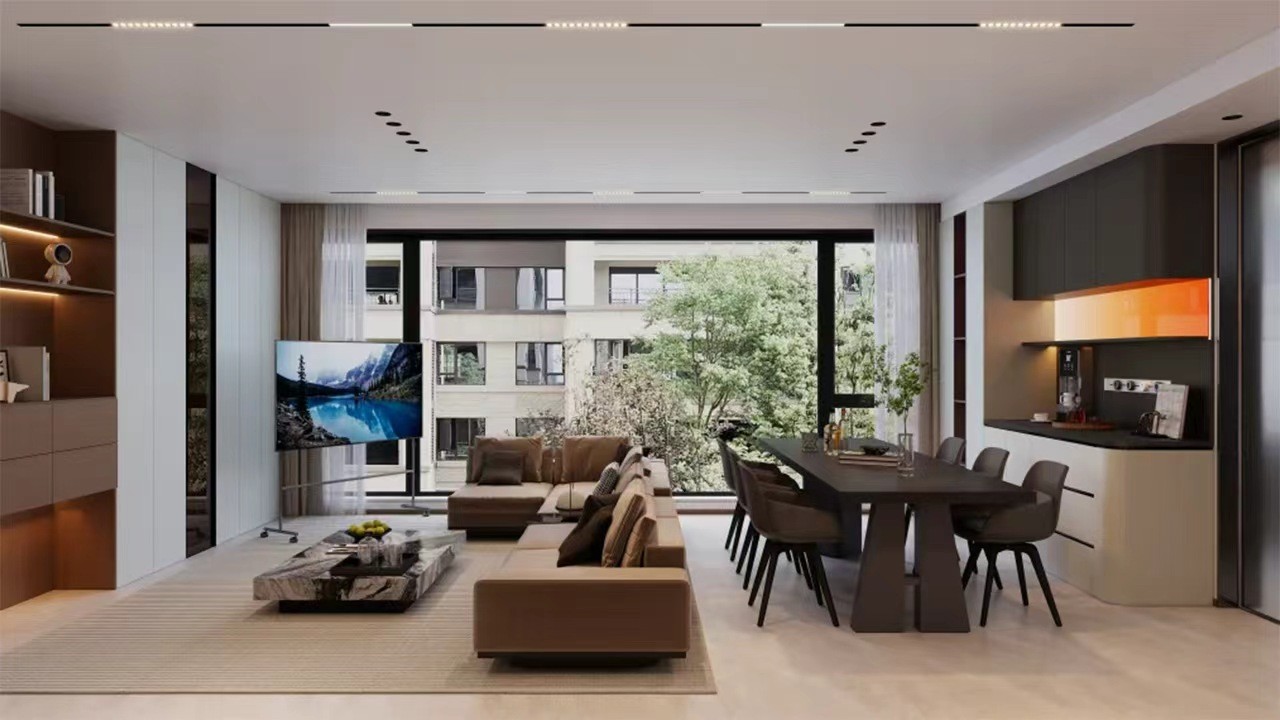 客厅配上超大的落地窗显得空间更加宽敞明亮。