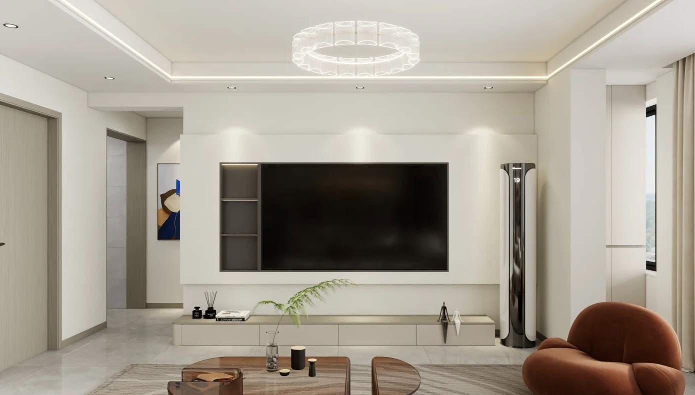 简单的石膏板悬浮电视墙显得更大气