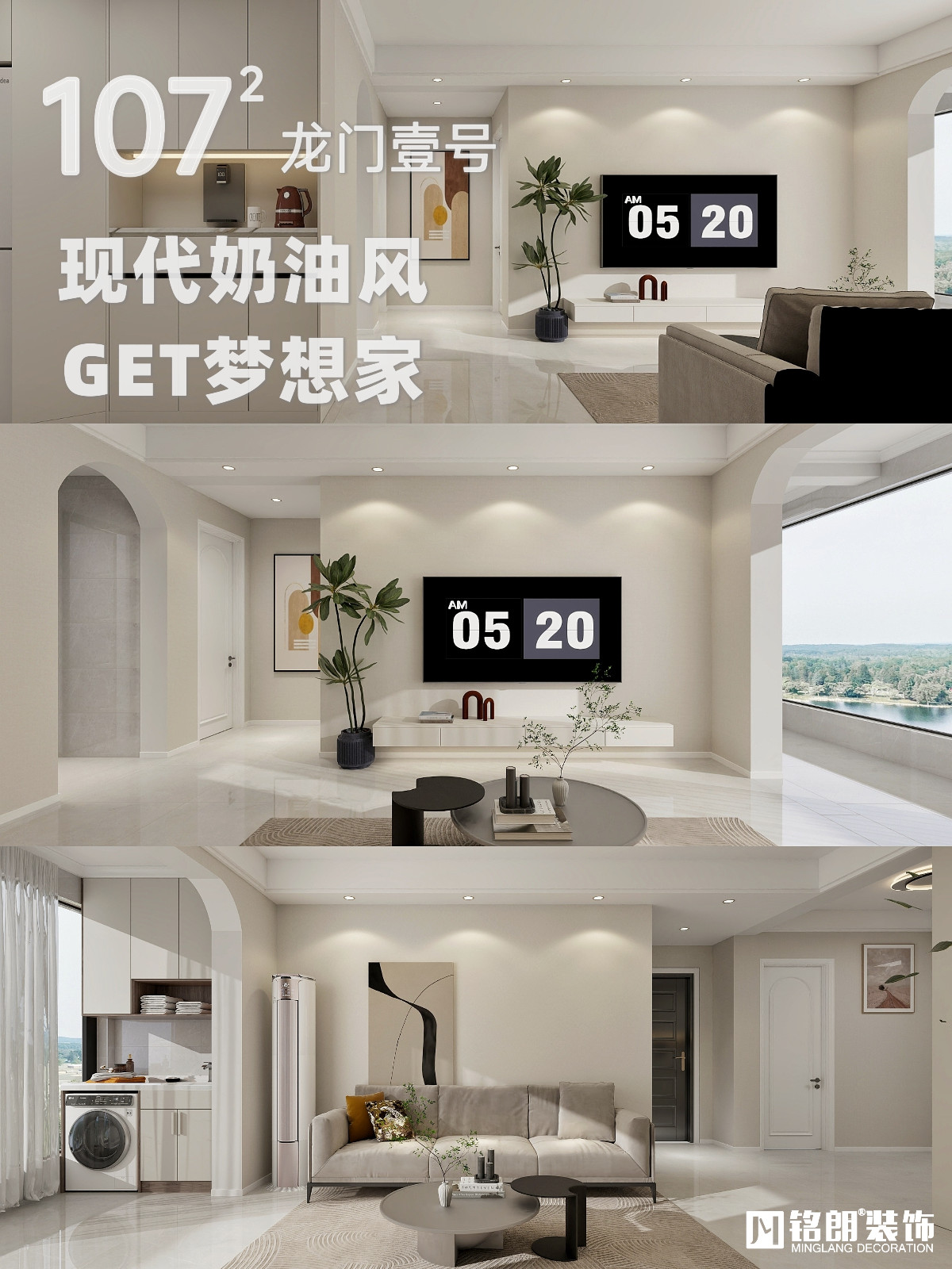 让人心软软的家,连空气都充满甜丝丝的味道🍧,兼具实用美观于一体,谁说这家小的,这家可太美妙啦‼️ 🍒地点:龙门壹号 🍒面积:107m² 🍒风格:现代奶油风
