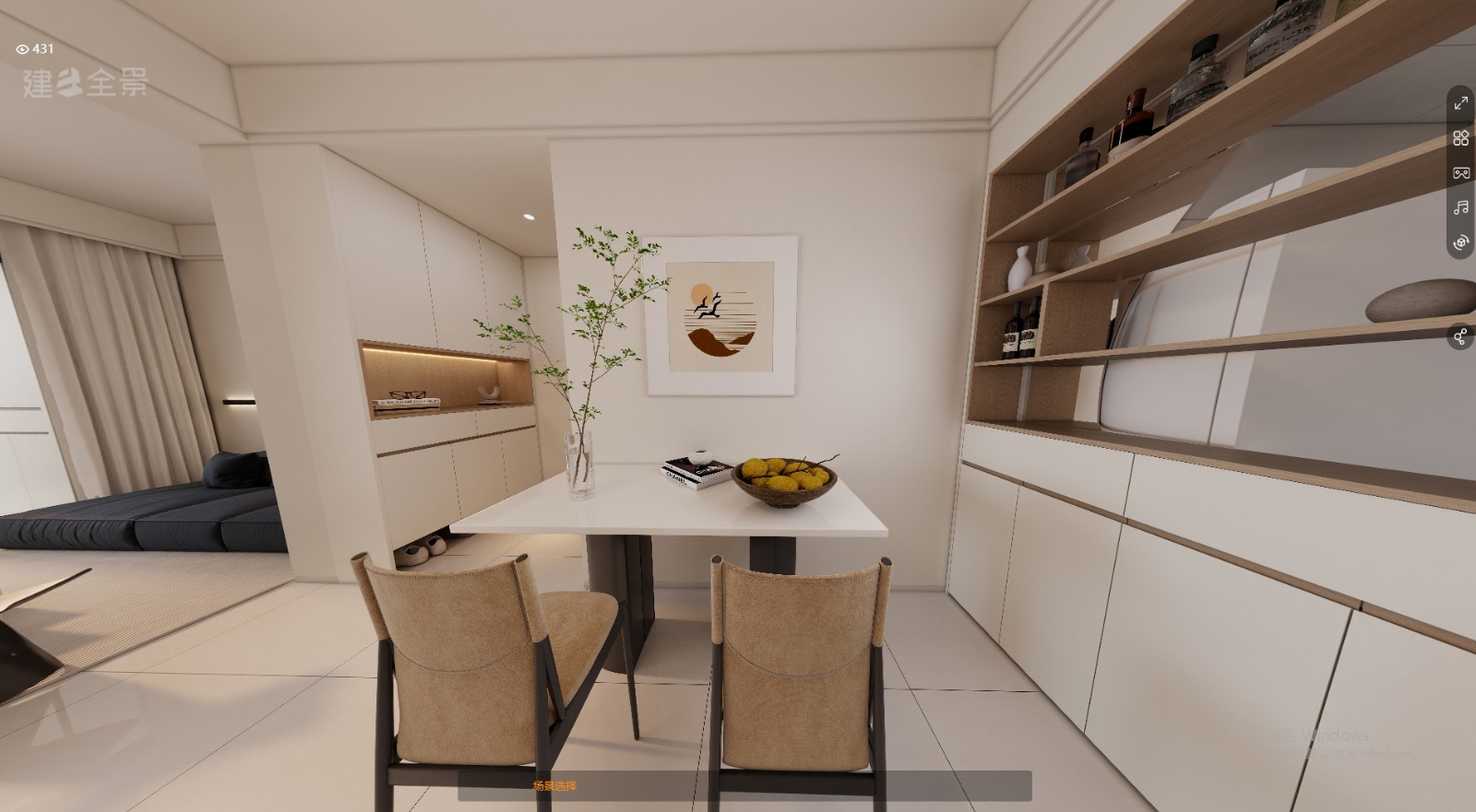 全屋墙面除定制柜外通刷菱花白的乳胶漆,奶白色调,更显清和温馨,定制柜用浅灰色搭配原木色开放柜