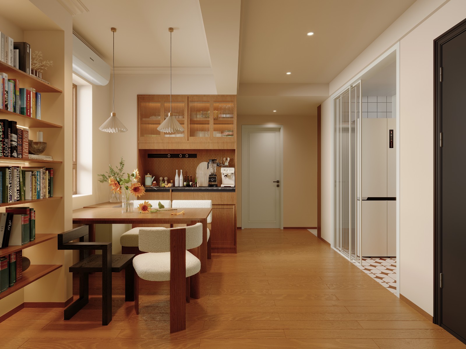 原有户型是两房一卫,保留两个卧室的基础上,业主想再隔一个多功能的区域作为办公,半开放空间,卫生间也做了调整,使用起来更便利