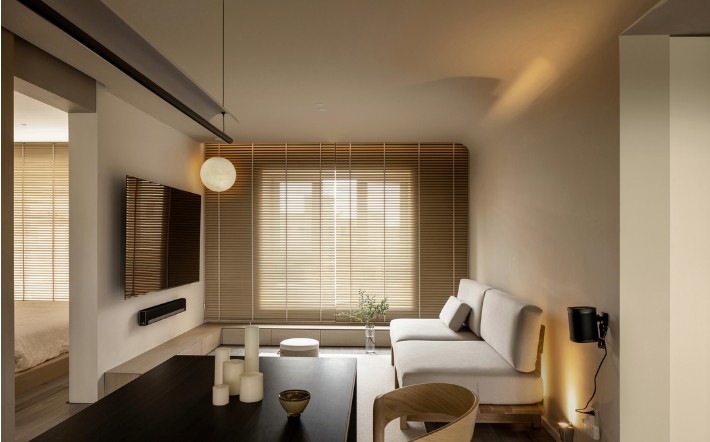 客厅给人的***感觉是,舒适安定。没有华丽的设计语汇,温馨柔和的墙面色彩,奠定了现代简约基调,木百叶设计为空间注入了温度与柔和。慵懒的灯光设计,让空间氛围纯粹且温馨。