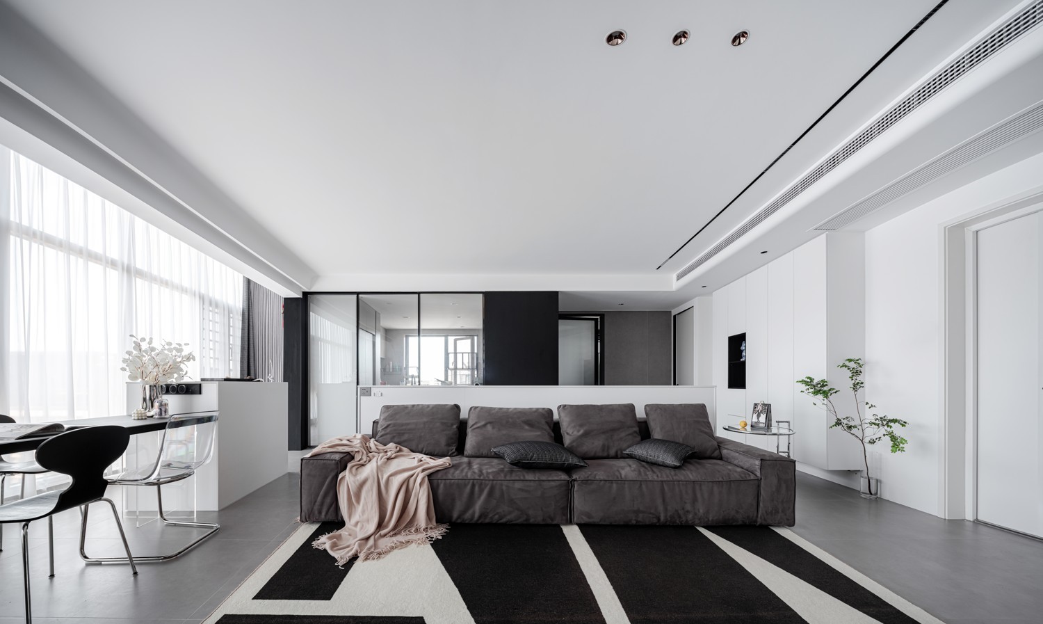 这套黑白灰现代极简风住宅,以“克制的线条+通透的场域”为核心,把理性美学与生活温度揉进每一寸空间,更是为“人宠共生”量身定制的舒适容器。