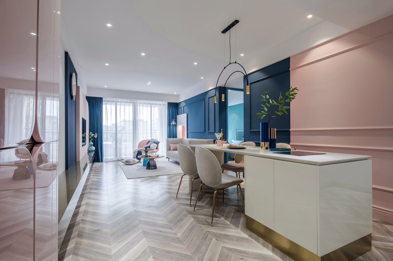 入户玄关Entrance hall丨 你, 是一个精致生活且忙碌的大(chan)美(shi)女(guan) 我,集帅气可爱于一身的喵星人 你说你赚了钱为我买了个大house 准备让我当个喵中贵族“ 唔,我的新房看起来不赖。” 酷酷的蓝,少女的粉 像是富士山下的樱花飘落到了海里 把稚嫩和磅礴交织在一起,对立统一
