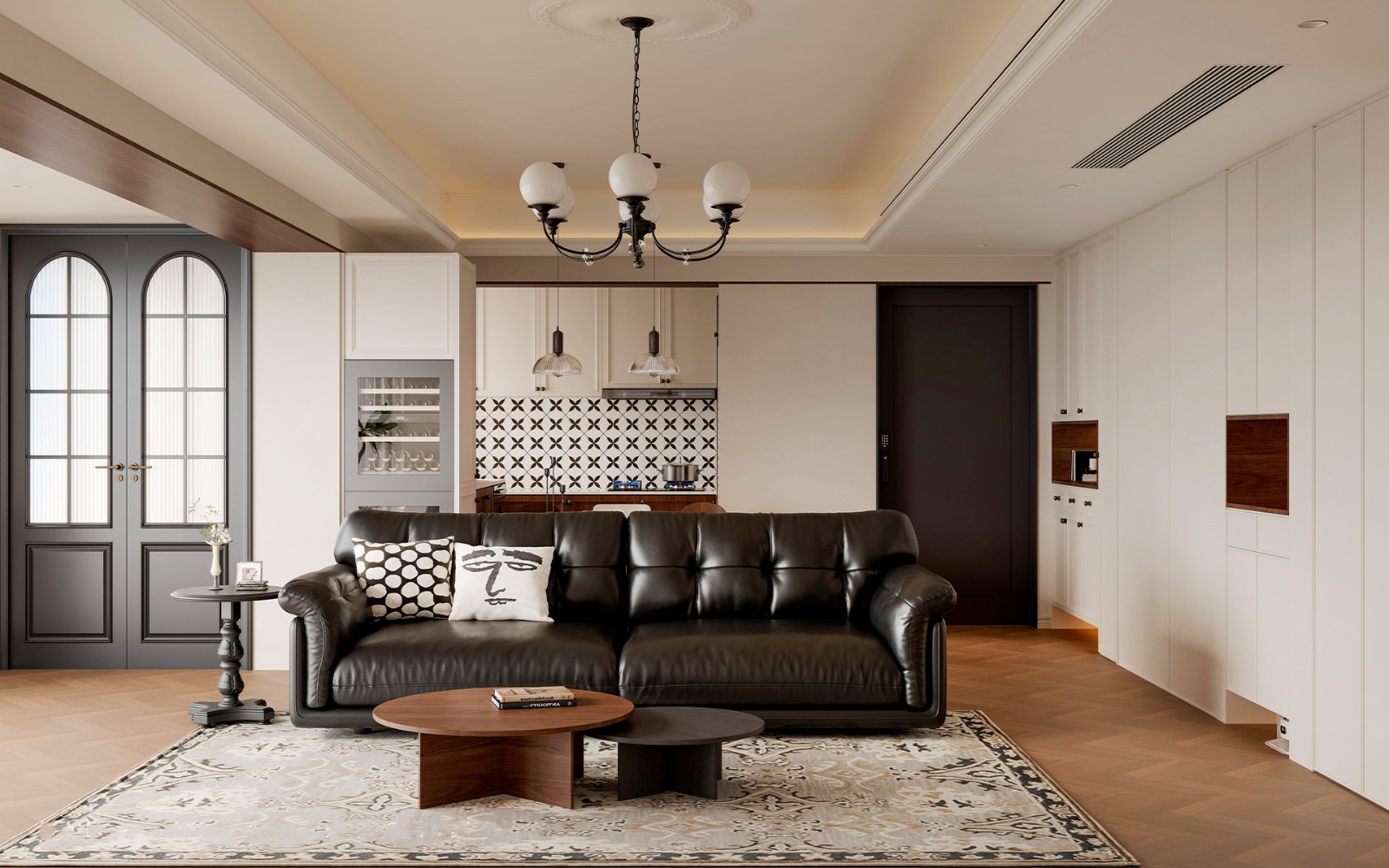 胡桃木柜体、弧形门洞、中古家具和精致的法式吊灯点缀空间,处处散发着一股怀旧复古气质🎨