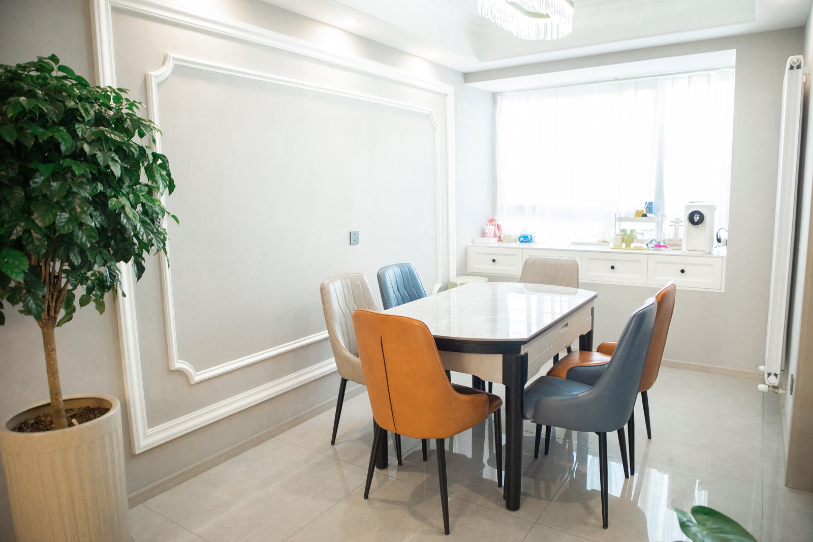 2、客餐厅保留原始空间,餐厅侧墙取消,餐边柜内置,增加便捷功能性。