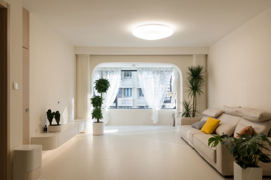 客厅采用极具醇厚感的奶油色为主调,搭配上浅色调的沙发