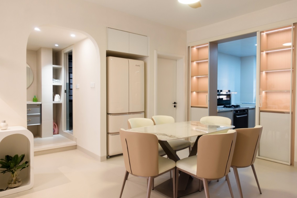 嵌入式冰箱有效的节约了餐厅空间,使得就餐区域得到极大释放