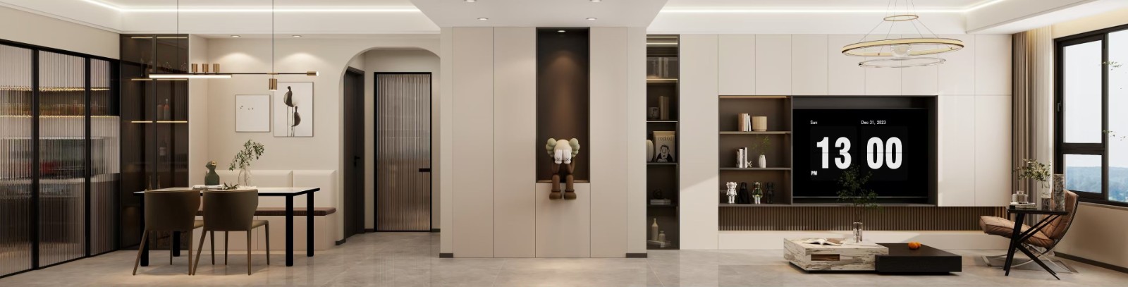 整体采用黑白灰为主色调,配合灯光的设计,简约不简单。