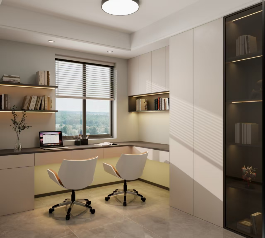 L形书桌满足男女业主同时办公