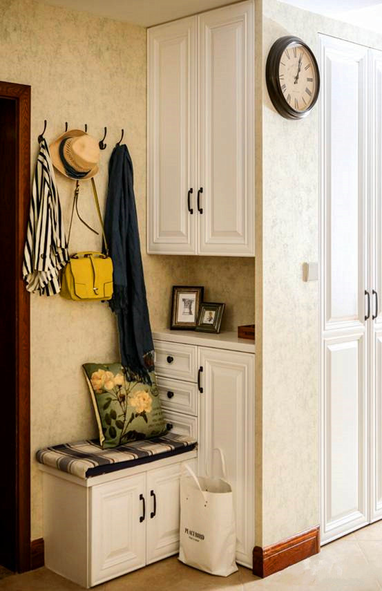 关于风格的理解,其实没有一个标准模式,而大家更愿意去选择对一个整体效果的视觉评价。近年来不知不觉兴起的美式风走进了大家的视线,这种风格给人感觉温暖,华而不奢,艳而不妖。这可能就是大家容易接纳的原因吧。 此屋全程装修由我们(孝顺的女儿及女婿负责)。由于是海归的原因,最美好的年华都留在了那段时光里,言语中流露出对地道美式的向往。考虑到常住人口年龄,家具颜色偏深,因而将家装风格定为简美,造型基本被忽略,更多考虑的是父母的生活习惯、舒适度、打扫的方便性、储物空间的需求等人性化设计。由于是西边户,光线略弱,设计初期在过道空间分割时放宽了尺寸,墙面处理考虑浅色墙纸,从光线上尽量平衡。大空间基本没有大的变化,总体来说没有多少修饰,走的还是简洁舒适实用路线,体现更多的是生活气息。