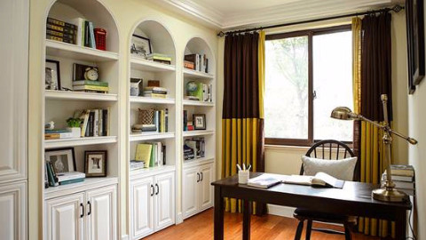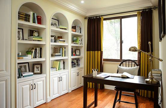 书房的书柜,上面做的拱形门,美式的感觉出来了,不过我老公很不喜欢,说怪怪的。