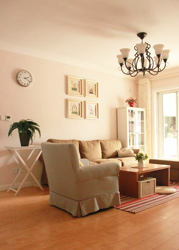 设计理念:(纯粹“拿来”主义 ) 喜欢简洁但不喜钢铁和水晶的冷静, 喜欢田园但排斥满眼碎花的热闹, 喜欢古典但不爱宫廷的奢华…… 于是有了这样一个日式田园小家, 用棉布和木头取代了金属和玻璃, 用绿色植物妆点出田园的气氛, 用复古的小物件凝固分秒的时光。 终于可以在周末的清晨或午后,躺在沙发或地台上, 静看日光在墙上和地板上流转,领会“慵懒”的含义。