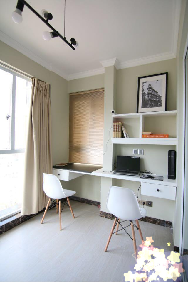 本来是南面的阳台,接连着客厅。由于已有生活阳台,于是便改装成了小书房,两人办公学习和某汪的卧室都在这里了。