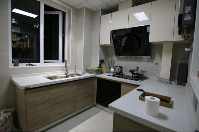 今天厨房门装好了,可惜门套和边上窗套没有平齐,算了,就这样吧~总体还算满意。