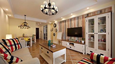 美式的沙发抱枕,还有美式的边柜,透露出无处不在的美式风格。