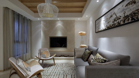 现代原木风。主要由曲线和非对称线条构成,将自然界中各种优美、波状的形体图案体现在墙面、栏杆、窗棂和家具等装饰上。整个形式有条不紊、与曲线融为一体。