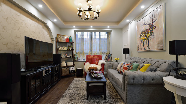 我们家装修新房的时候,我比较喜欢地中海的风格,但是我LG比较喜欢美式的风格,所以有了最后的美式地中海,客厅,最喜欢的就是客厅的背景墙,没有很传统的地中海风格圆弧形状,而是加上了一点点的小造型,墙纸的花色上是设计师建议的。