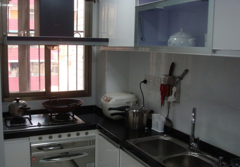 厨房,装上了老式的刀架和挂钩,不过我觉得老的就是好,实用!