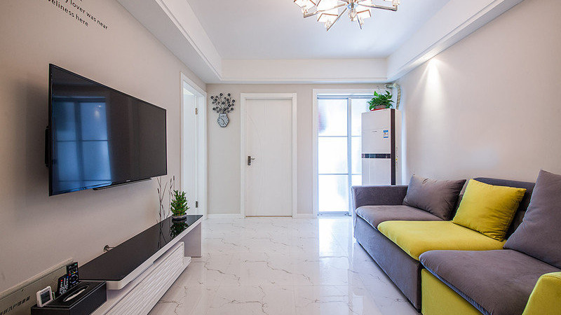 卧室的电视背景墙并没有过多的修饰, 一切遵循简单、干净