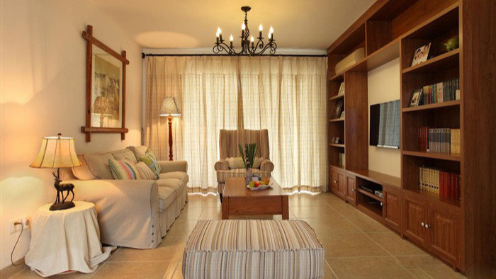 客厅。拉上窗帘,开灯效果很温馨 很暖和。