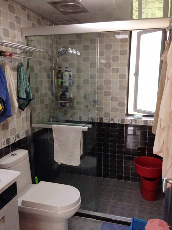 自从装修开始以来,周末对于每一个装修的人来说,都是奢侈的。一早接到浴室柜的安装师傅电话,一会就到了,于是和弟弟妹妹快速来到工地。速度的确很快,师傅们已经搬好东西在房里了,两个师傅,一个着急要收钱就走人,而我连看都没看我要的东西呢,于是连忙打开包装检查,也不知道他到底着急什么,一大早的就催命一样了。没办法,他着急我也着急,留下一个安装工人,把货款交了后另外那个人就急忙忙的走了。 安装工人很细心的在洗手间里忙碌起来了,淋浴间,浴室镜,浴室柜,装到浴室柜的时候发现装回水器的两条管子位置弄得不高不低,而且还问这么还用那么老土的管子呢?