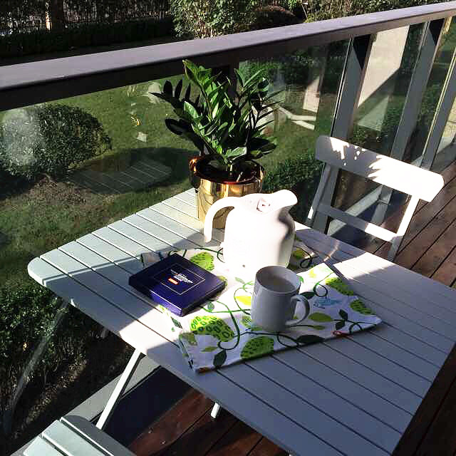 虽然滨江物业不允许包阳台,但他们无法阻止我把阳台打造得有腔调。首先地面必须是防腐木,难打理也好,怎样也好,人勤才有家美,我始终这么认为。然后阳台围栏上,各种植物种起来挂起来,缤纷的天然色彩会给客厅和主卧增添美感,更能让我忘了阳台对面是农居房这一事实…说到阳台,二楼的好处就来了,物业辛辛苦苦维护那些树木草地,高层的朋友们在家可欣赏不到,或者只能远观,但是二楼的业主,却能亲近这无比养眼的绿色,真是福利啊有木有!(真会自我安慰)我的户型有个相对总面积来说非常大的阳台,尽管偶尔也会想:这么小的房子,还不如室内面积多一些呢。但大多数时候,我还是愉快地接受了这个上天的安排,就让阳台成为我的家中一景吧!
