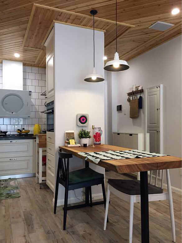 装修特色:轻装修重装饰 注重环保和日后的多变性 。 此处好像应该有一段开场白:结婚七年,我和老公终于有了一个真正属于我们自己的房子。尽管它没有现在的房子面积大,户型采光也都很一般,但它意义非凡。有了它,我觉得平日的辛苦工作是有回报的,它让我的生活充满了新的期盼。我是一个装修控,或者说家居控。 上一次装修,我用黑色咖啡色米色打造了一个简洁耐看的家。这次,我想要更接地气多一点,旧旧的温暖的岁月感,多一点随性舒服的生活气息。小又怎样,我的屋子里有我爱的物品,流淌着我和家人的生活痕迹。清晨准备健康丰盛的早餐,下厨时来点音乐,黄昏时分和家人散步交谈,睡前翻几页喜欢的书。休息天看本好片、浇花、做面包、打扫卫生,换上新买的浴帘和桌布,远离手机和电脑。这就是我向往的并且一直在实践的生活!