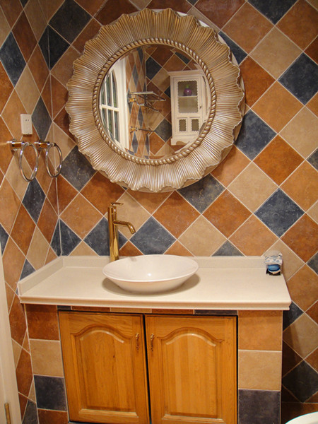 自己砌的洗手台,加上科勒的艺术台盆。楼上浴室的洗手台。
