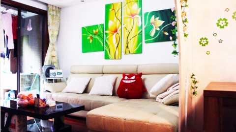 客厅沙发,小怪兽靠垫是亮点呀,吼吼!