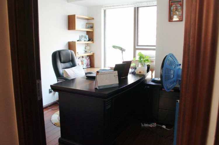 站在书房门口,首先印入眼帘的就是老公死活要买的老板桌了,话说有朋友来,看到这桌都嘲笑他一下,哈哈!