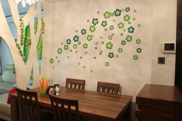 灯全打开后的餐厅,墙壁上都印出花来了。