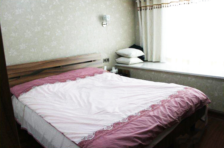主卧登场,落落妈赞助的床品之一,很喜欢这个颜色,飘窗很大吧。