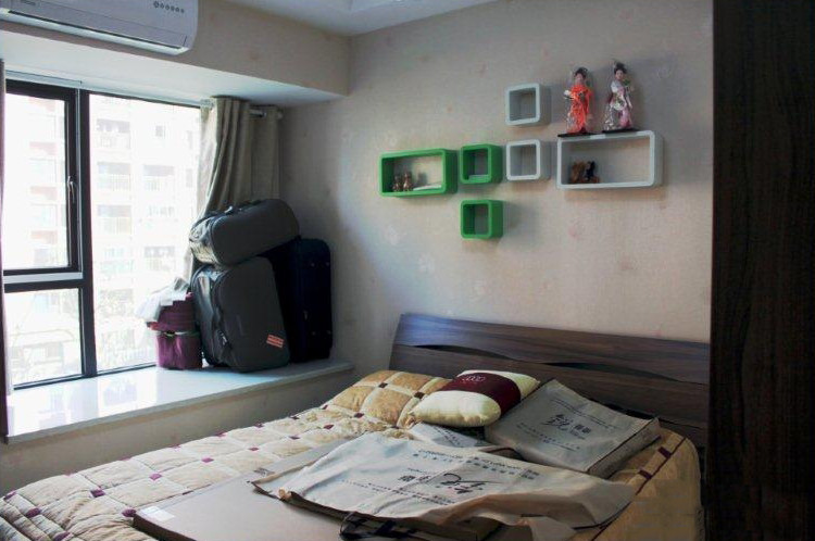 次卧真是小啊,摆下1.5m的床,一个小衣柜,就撑得满满了。