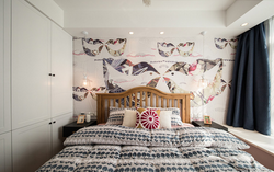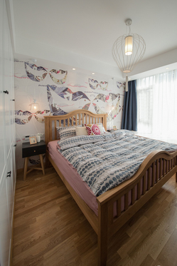 主卧抽象的壁画。很北欧风有木有!忍不住很激动啊,因为房子弄的太美貌了,快夸我!