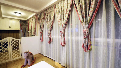 阳台窗帘和给宝宝儿子买的摇摇马,白色的部分是给儿子买的游戏桌。