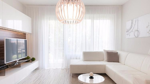 客厅的配色十分讲究,白色墙壁自然过渡到米色沙发,柔美的色调暖到心窝。