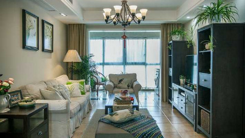 客厅篇。 满满的美式家具,就是那么的入眼。唯一遗憾的就是在地砖的铺贴上,原本是要做点造型的,后面还是因为预算问题,选择了简单的传统工艺。就这么凑合着过了。看久了也就慢慢顺眼了。