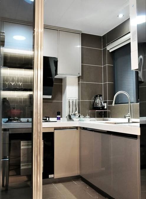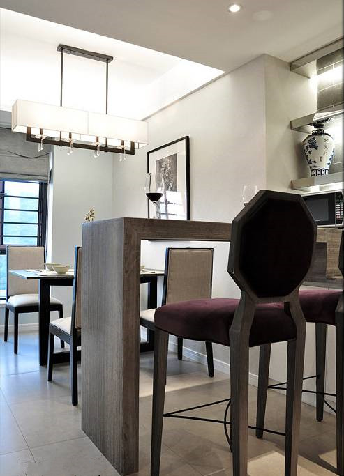 餐厅一直在纠结中。因为厨房很小,又不想做开放式, 外部的空间单独放一个餐桌又是资源浪费,平时就几口人吃饭, 设计师设计了完美的吧台,成功解决厨房小的问题,餐厅空间又合理利用,大爱!
