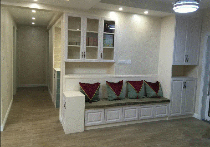然后就是尽可能的打墙做柜子,因为户型空间少,只能创造开发空间!我几乎打掉了一切可以打掉的墙!为了有个心仪的大鞋柜,还用鞋柜做成了隔墙!