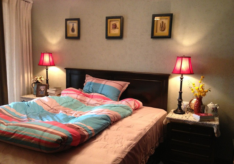 蜗居在小楼里,每天写写字,看看书,做做饭,会会客,淘淘宝,收收包裹,像是隐居了。 入住以后,一直没有配什么软装,最近买了一些,大红的台灯是意大利客户订的新款,老板笑着说,国内喜欢的人不多。这个灯很高,又瘦,大红色又比较特别,有点儿妖冶吧,但美式的味道很浓,伙伴们看看效果怎么样。 顺便晒一下“闺房”吧。