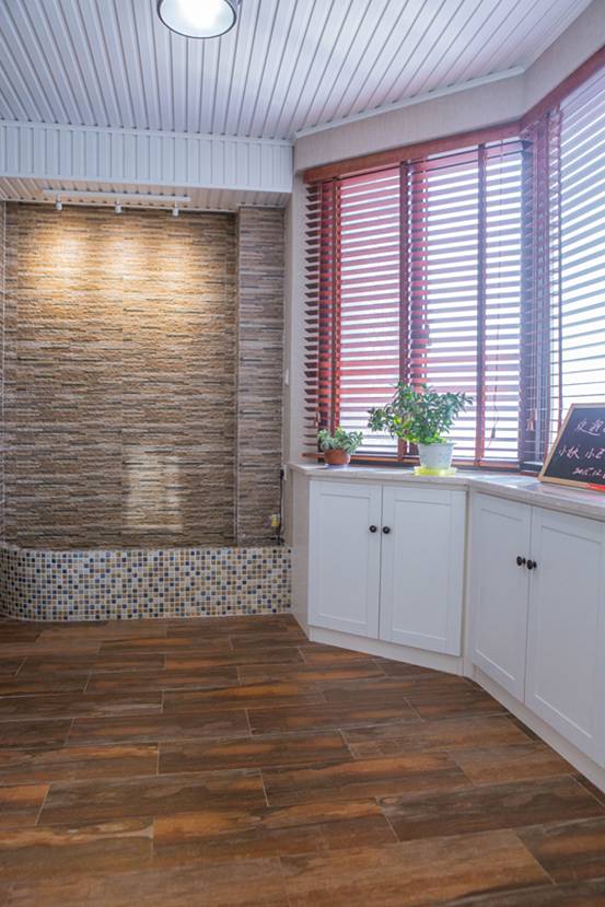 阳台生态木吊顶也搞定,小美的感觉立马出来。