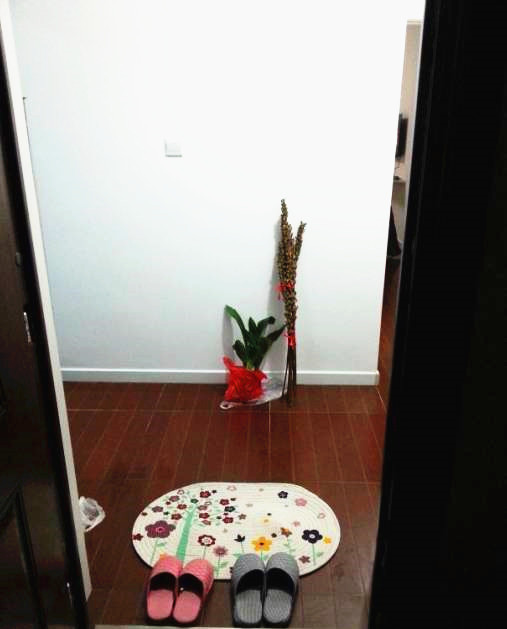 入户门;老妈带过来的万年青和芝麻杆;还木有时间去买个花盆;